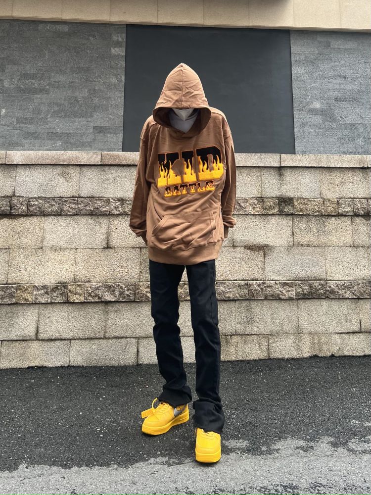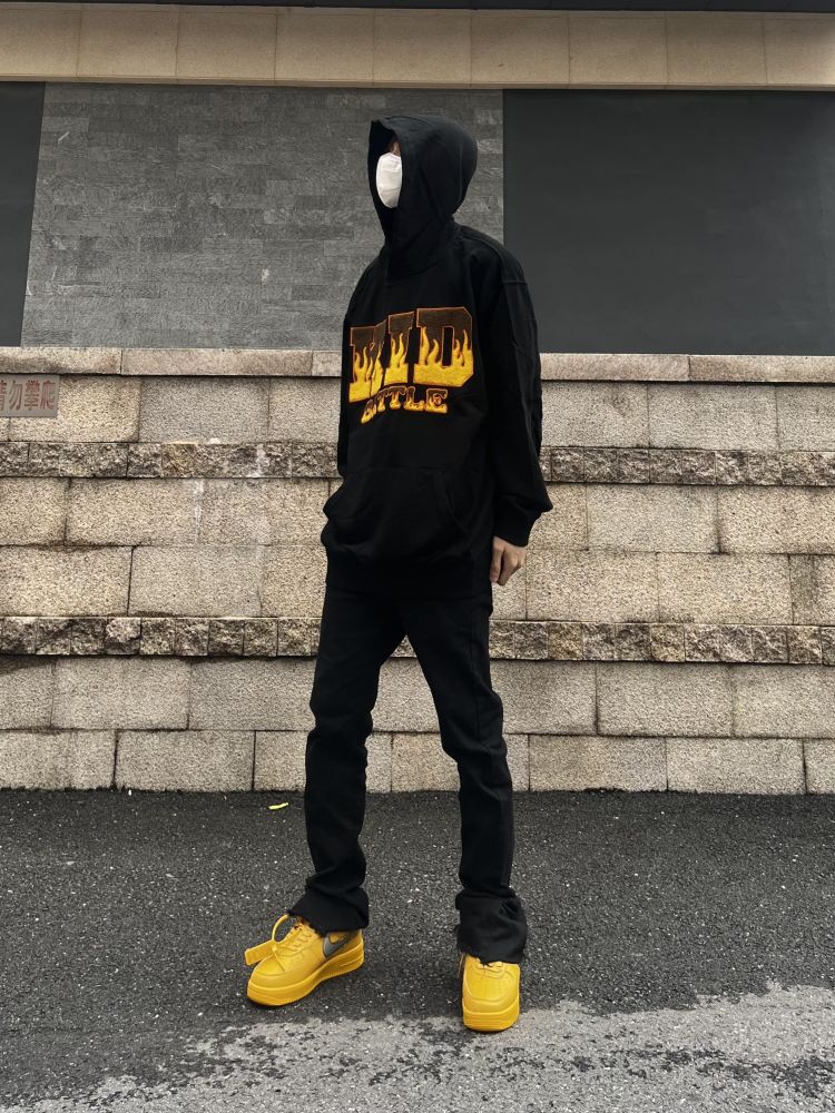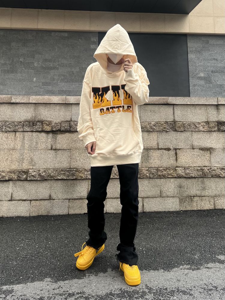 High Street New Fall Retro American Street Hip Hop Oversize Flame Letters Linked Hat Lax Sweater Men and Women