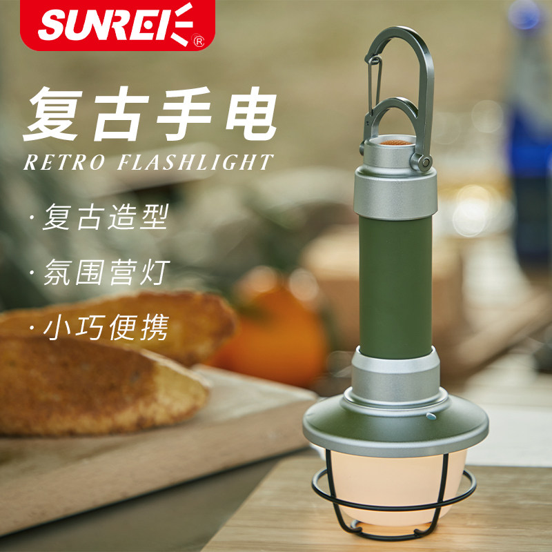 Sanliz Pine Cord 5 camping retro - paste flashlight waterproof portable LED double color temperature multi - function camp lamp