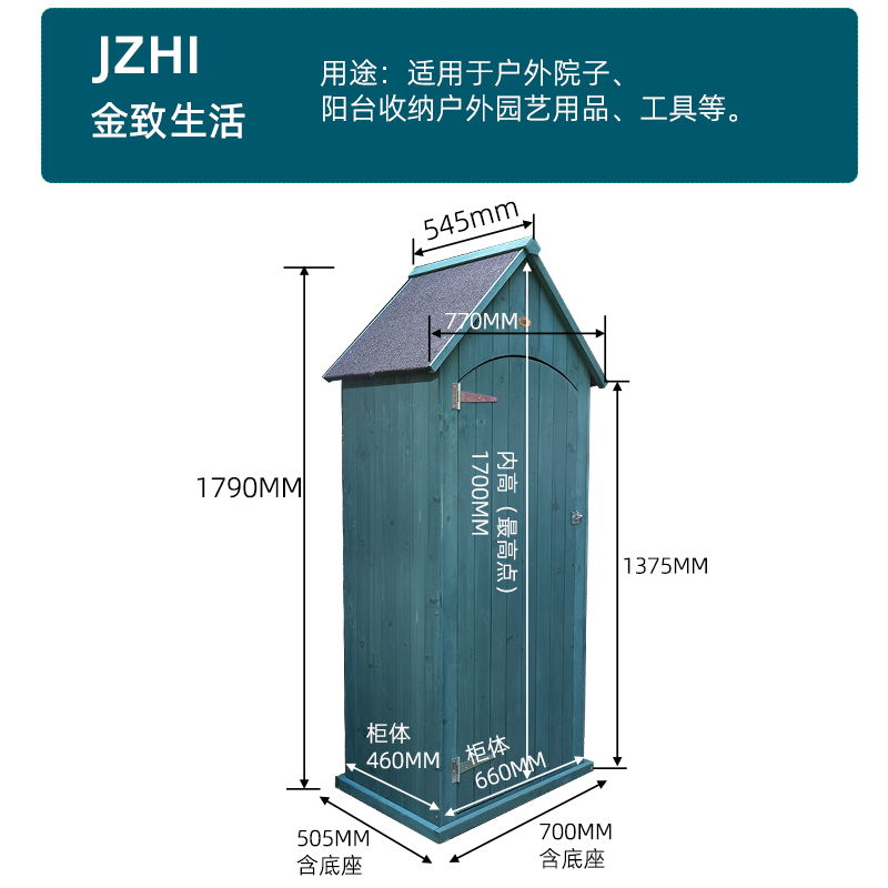 Storage cabinet storage finishing tools gardening outdoor courtyard rain-proof balcony solid wood rain-proof sun-rotted dark green pastoral