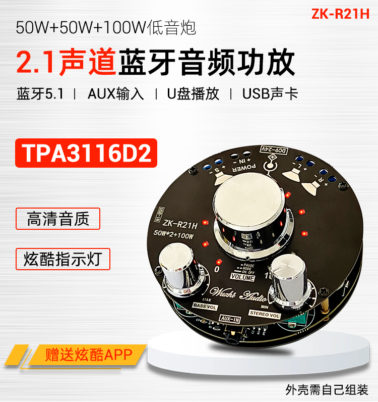 ZK-R21H cool volume indicator Bluetooth amplifier module 2 1 channel heavy subwoofer TPA3116