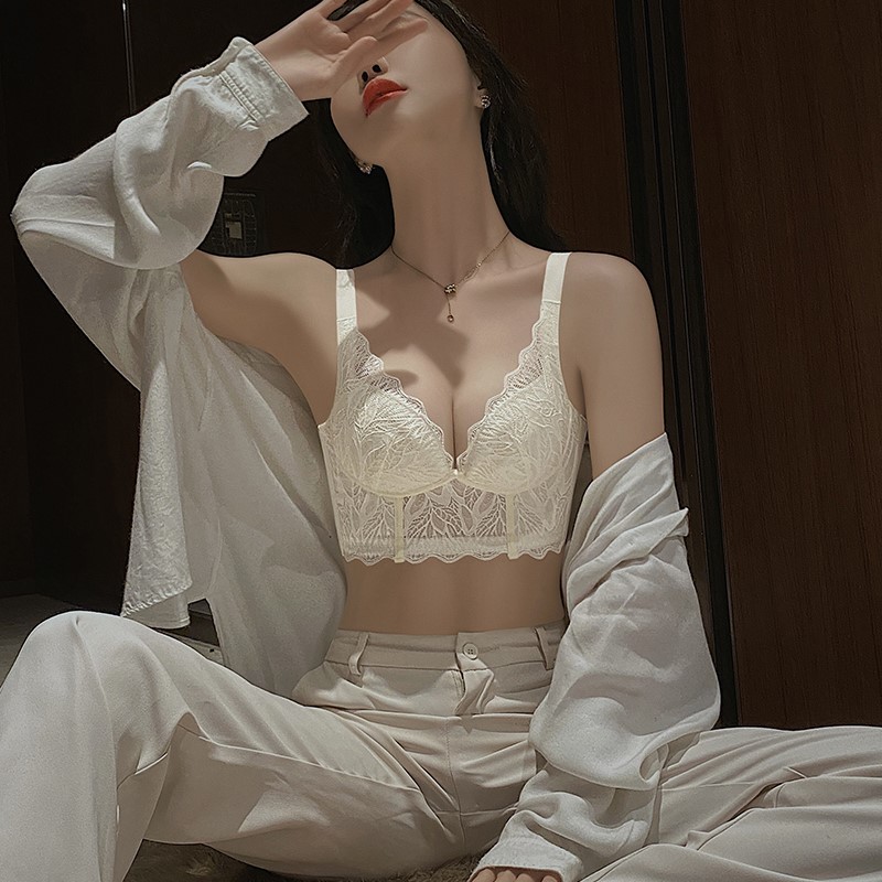 Sexy lace underwear woman with thin chest and small size to collect breast and clasp bra confusion