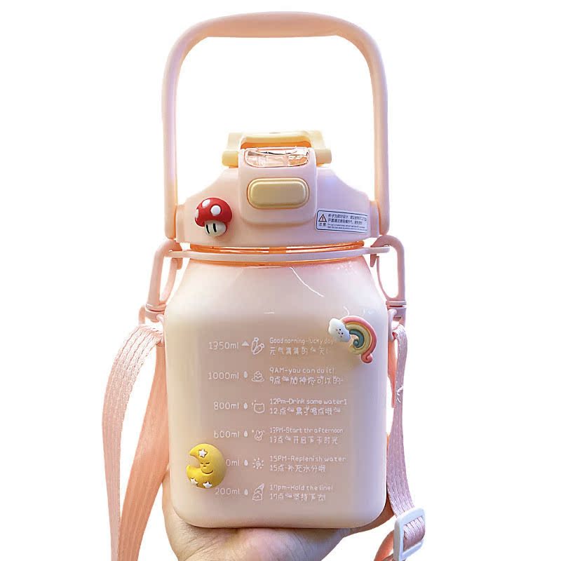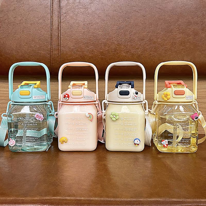 Big belly cup women's scale large capacity square big belly plastic cup female students outdoor strap straw cup