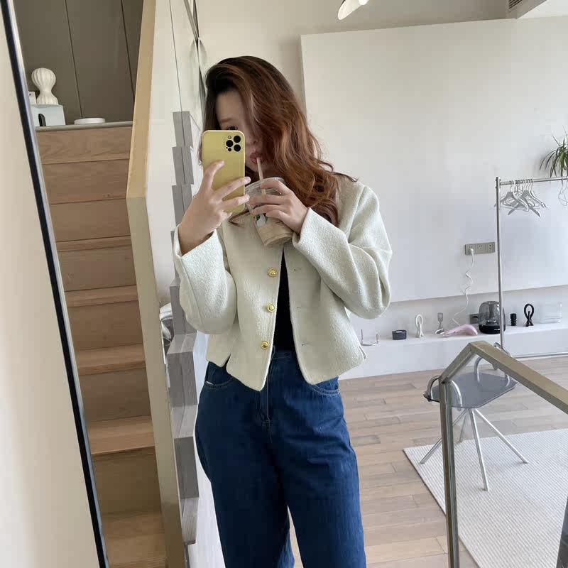 2022 autumn and winter new small wool blend small fragrance coat women's short tweed temperament ladies top