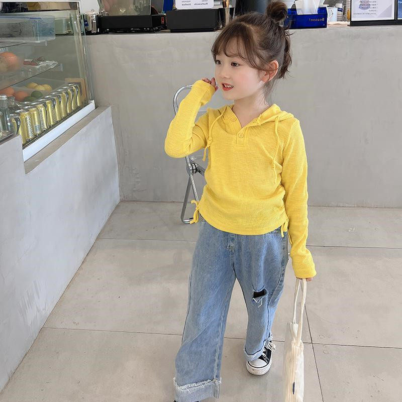 Girl's Long Sleeve T-shirt Autumn Kids Fan Fan Fan Fan Sleeve Cotton Children's Cotton Cotton Sweater Spring and Autumn Clothing