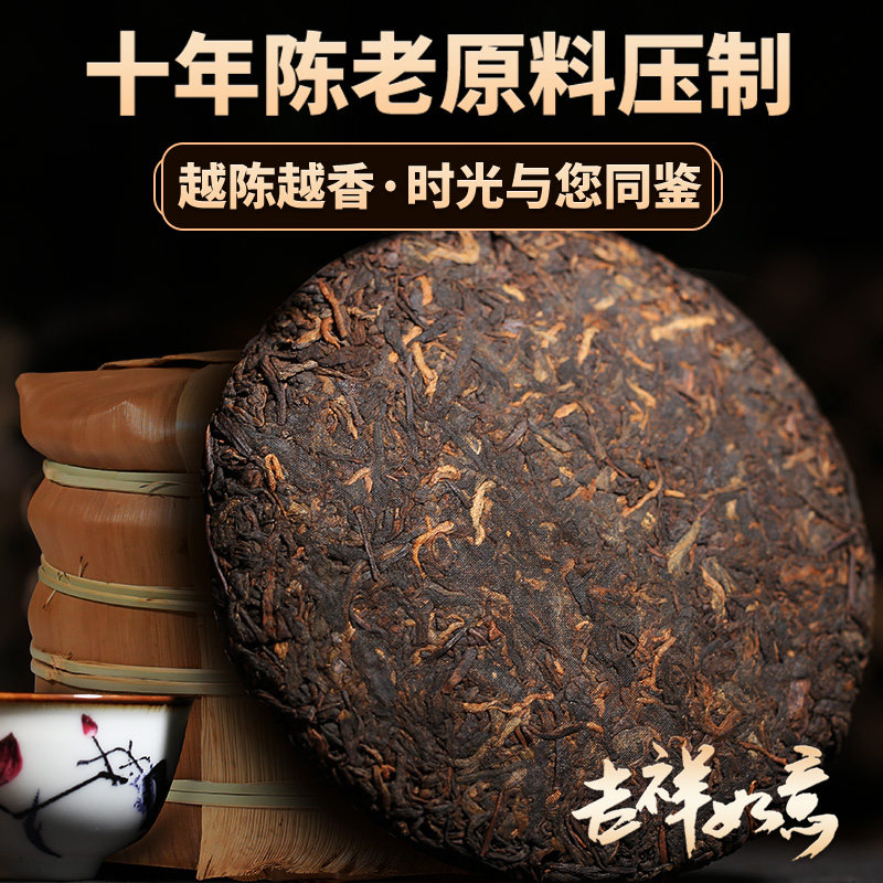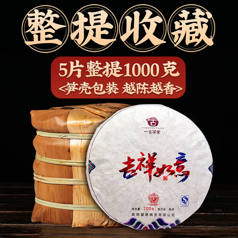5 pieces of total 1000g auspicious 10 years of Pu'er tea cooked tea greeting Yunnan Yunnan Yunhai Xihai cake tea leaf