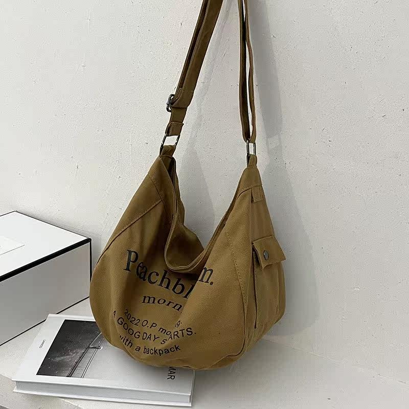 Crossbody canvas bag female Japanese new trendy American retro shoulder bag large-capacity student class book tote bag