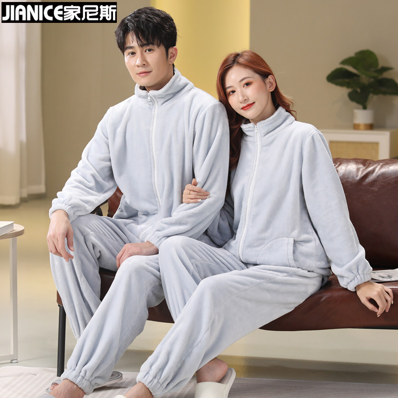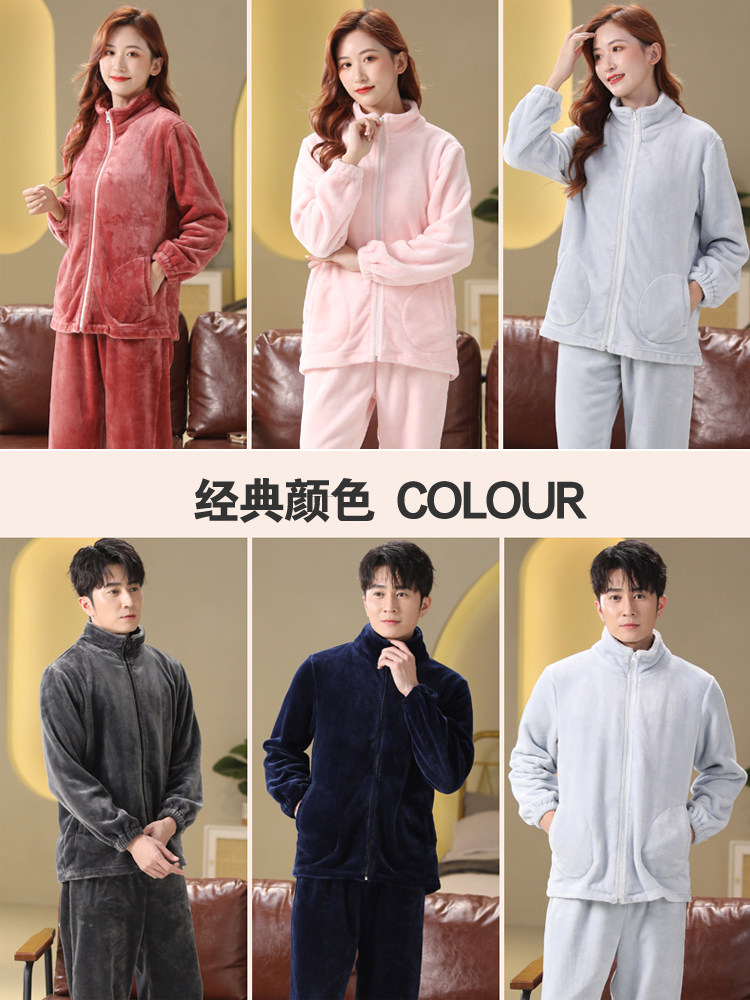 Couple pajamas autumn and winter flannel men and women thickened can be worn outside sports warm coral fleece cardigan home service suit