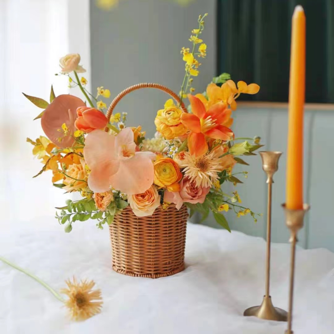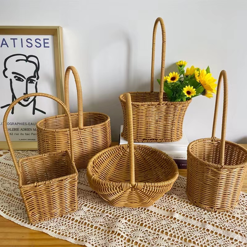Imitation vine choreography with flower basket iron art shaped flowers Green planting basket handwoven small flower basket living-room decoration hem-Taobao