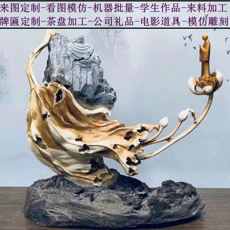 Wood carving custom graduation design pure handmade large Buddha statue Bodhisattva temple processing custom wood products painted root carving