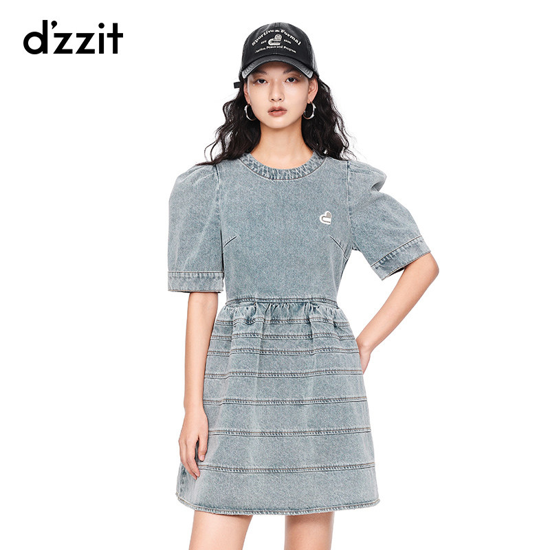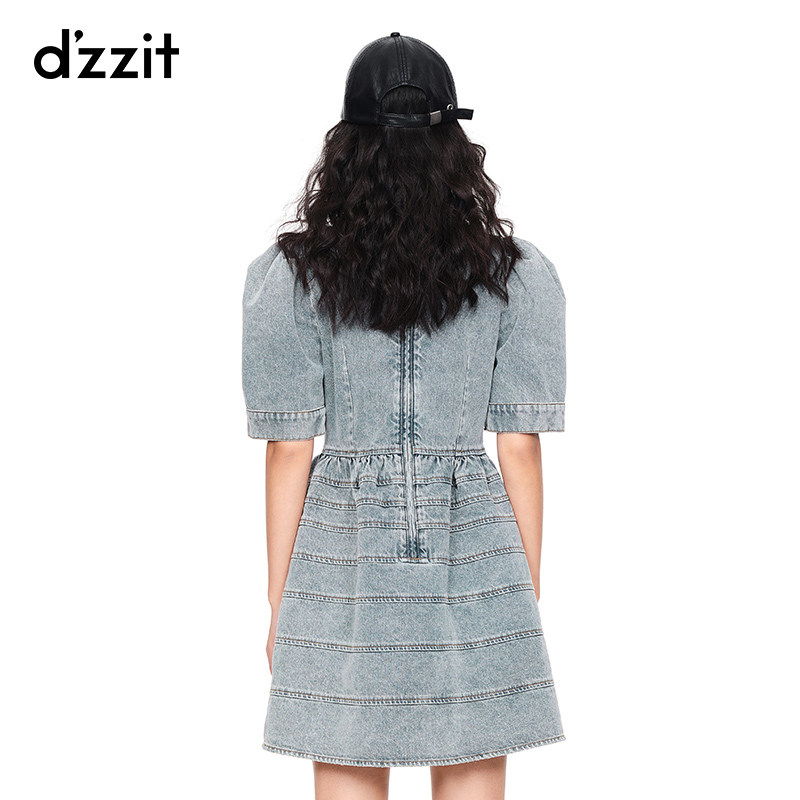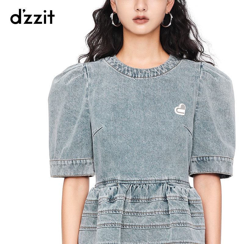(Bursting bill) dzzit ground vegan spring autumn sweet cool teenage girl Bubble Sleeves Denim Dress Cake and Dress Woman-Taobao