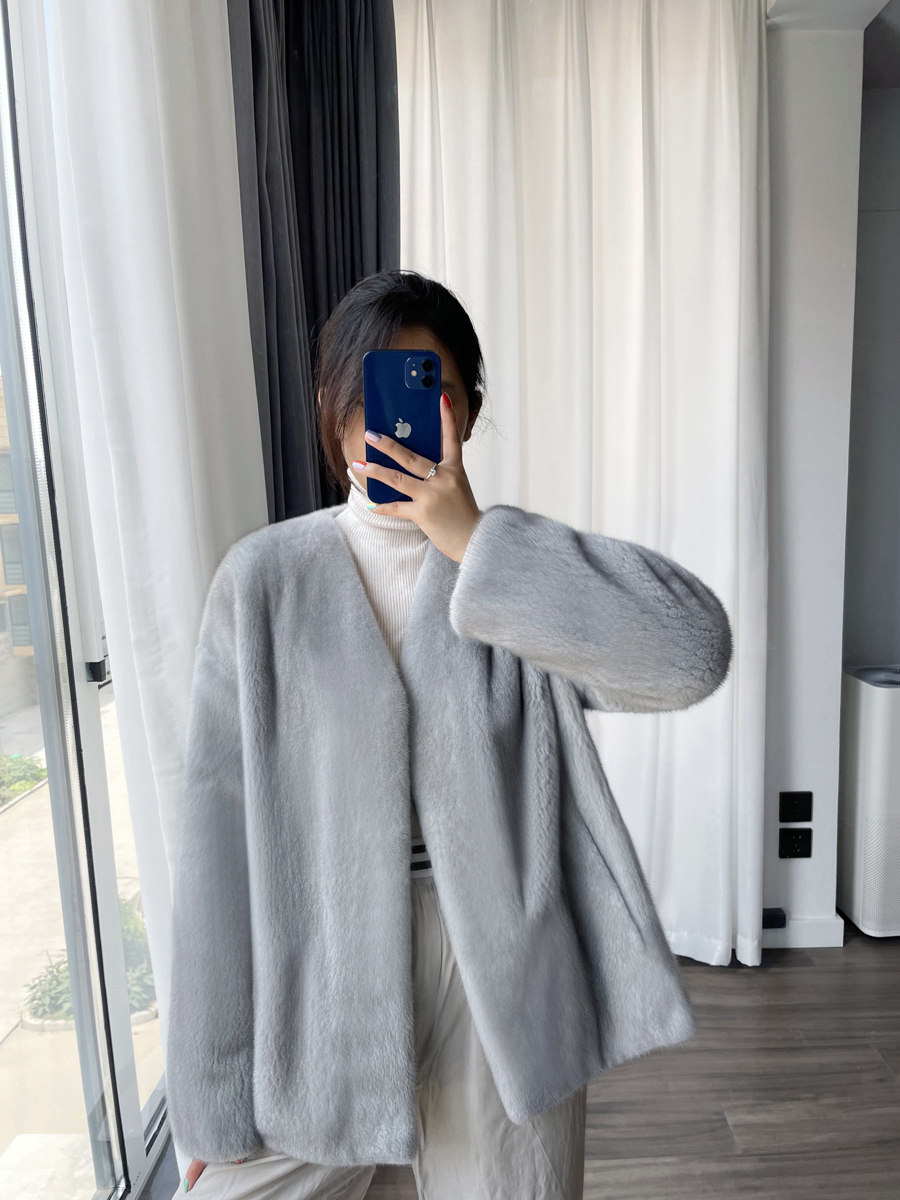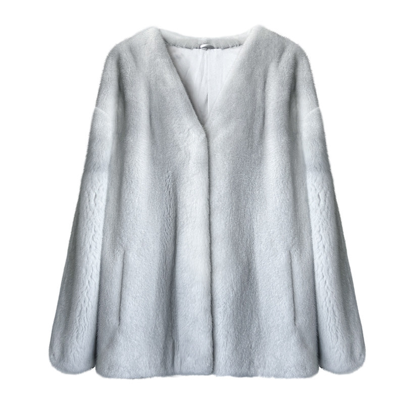 Louvre Lengthened Edition Imported Mink Fur Coat Female Whole Mink Mink Velvet V-neck Young New High-end Fur Coat