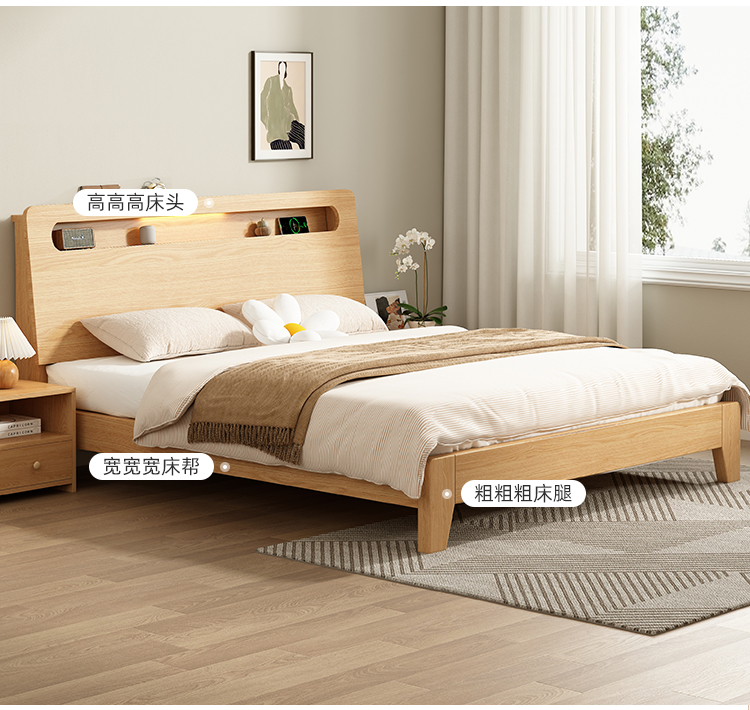 Solid wood bed modern minimalist 1 8m double bed master bedroom 1 5m big bed factory direct sale rental single bed frame