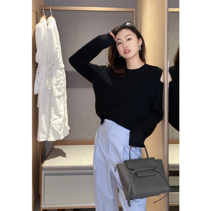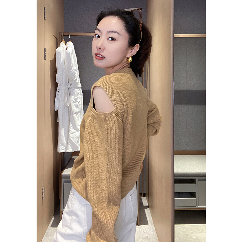 Mud brother's shop digging shoulder sweater fashionable retro off-the-shoulder woolen loose women's top