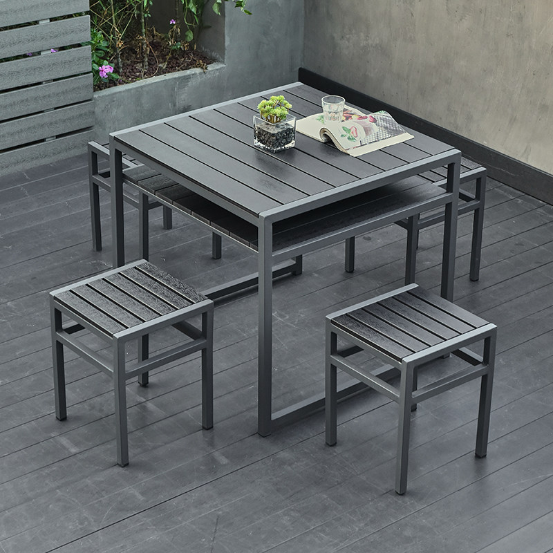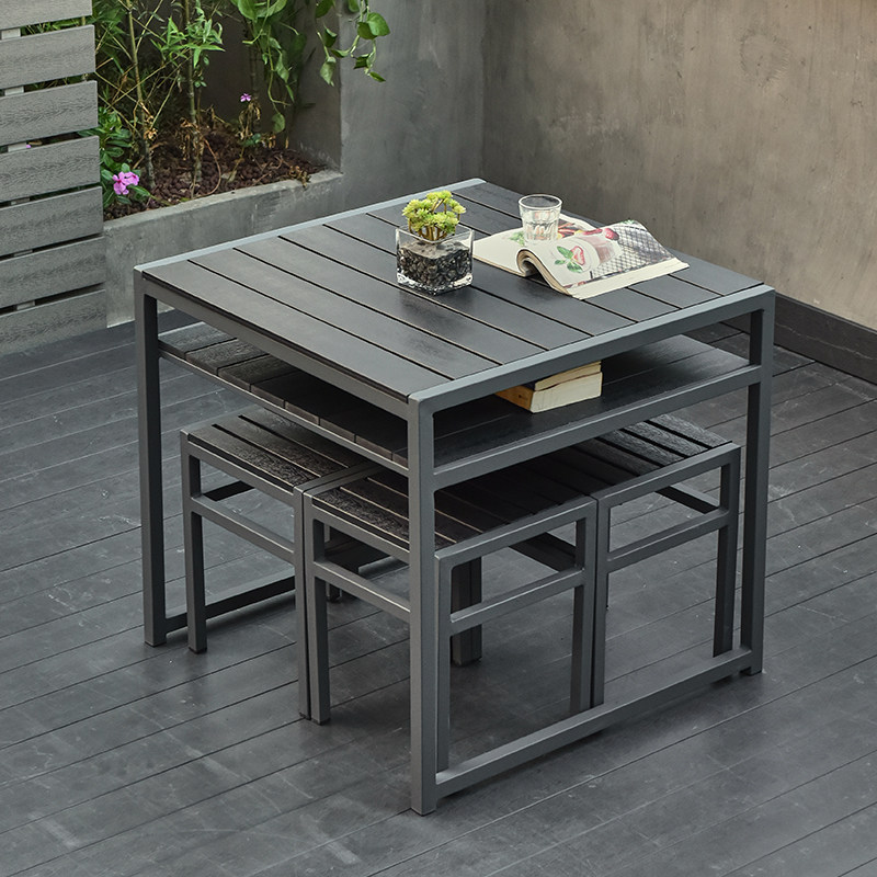 Outdoor plastic wood tables and chairs can be stored sun-resistant patio terrace garden outdoor leisure simple table and chair set