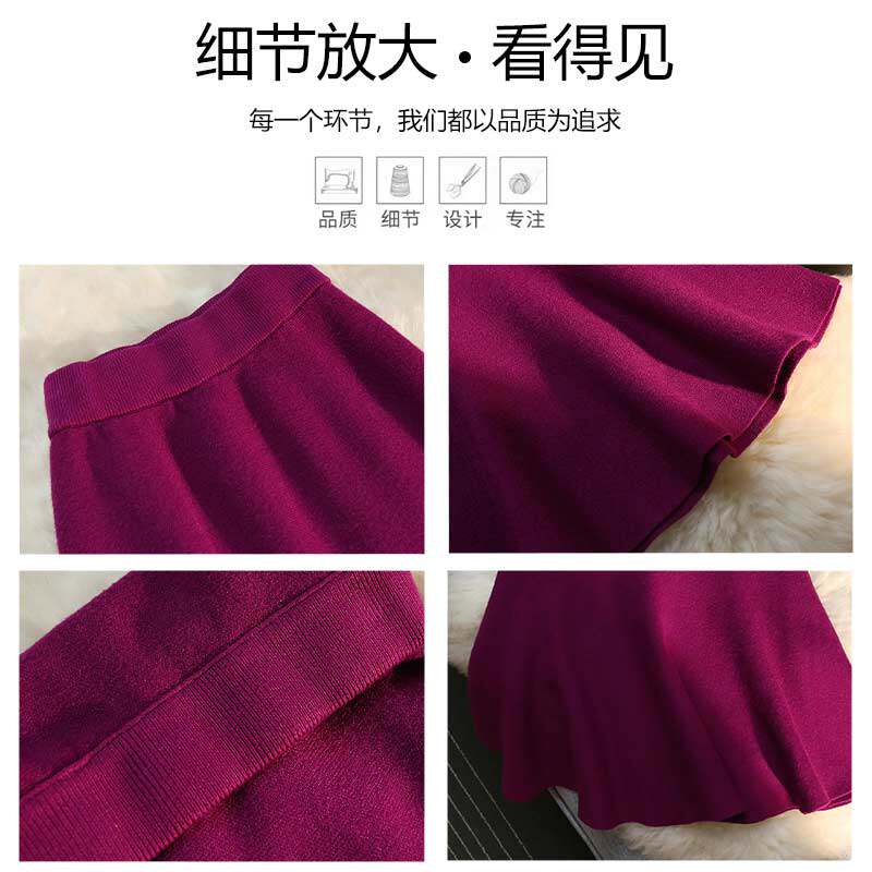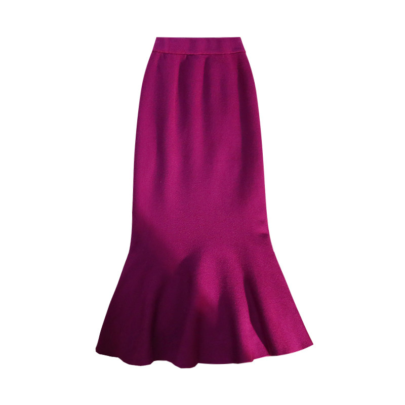 Knitted Skirt Half Body Skirt Woman Autumn Winter Mid style Hip Fish Tail Skirt 2023 New A-word dress High waist dresses Long dress-Taobao