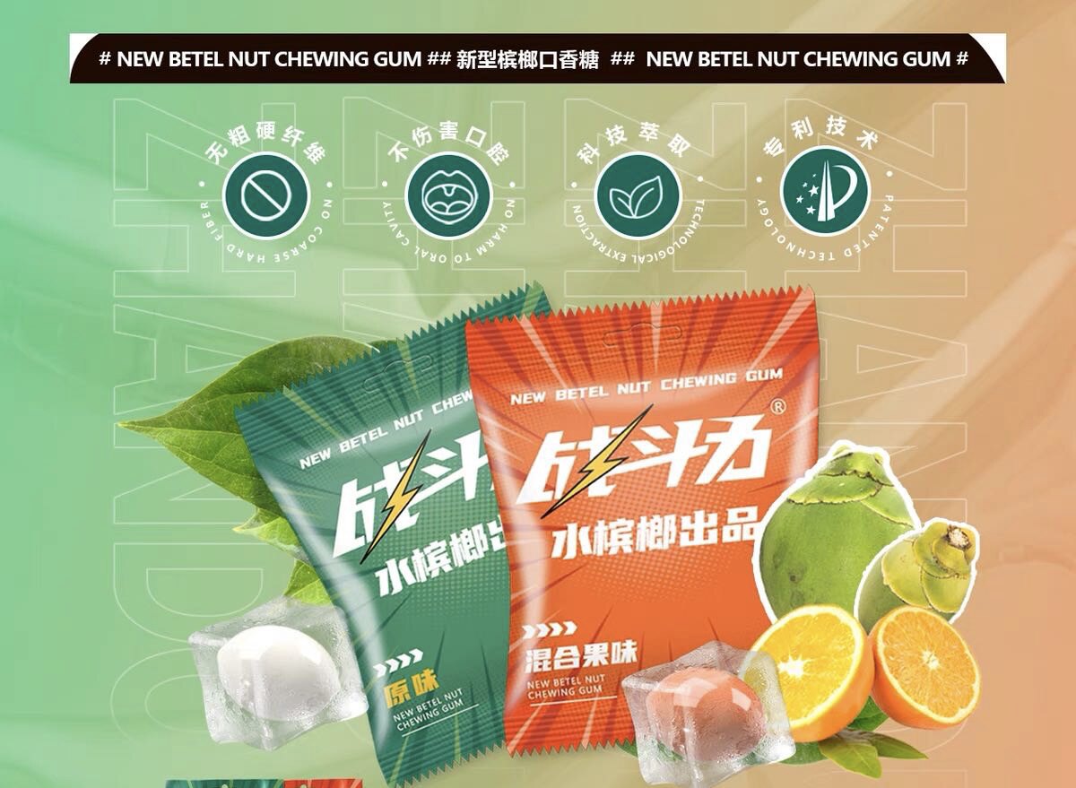 Combat Effectiveness New Chewing Gum Cool Hainan Betel Nut Bubble Gum Substitute Candy Refreshes the Mind and Drives to Work