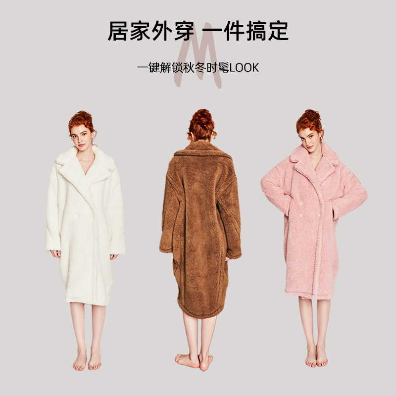 Merald Color Coral Suede Pajamas Bathrobe Winter Female Pyjamas with a new thickened padded jacket with warm family clothes-Taobao