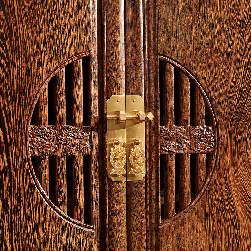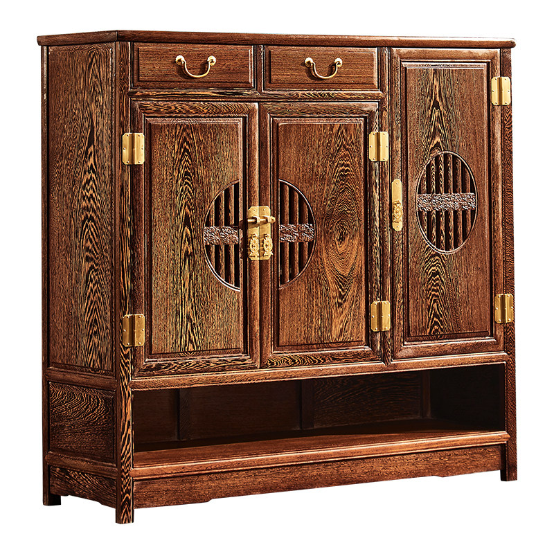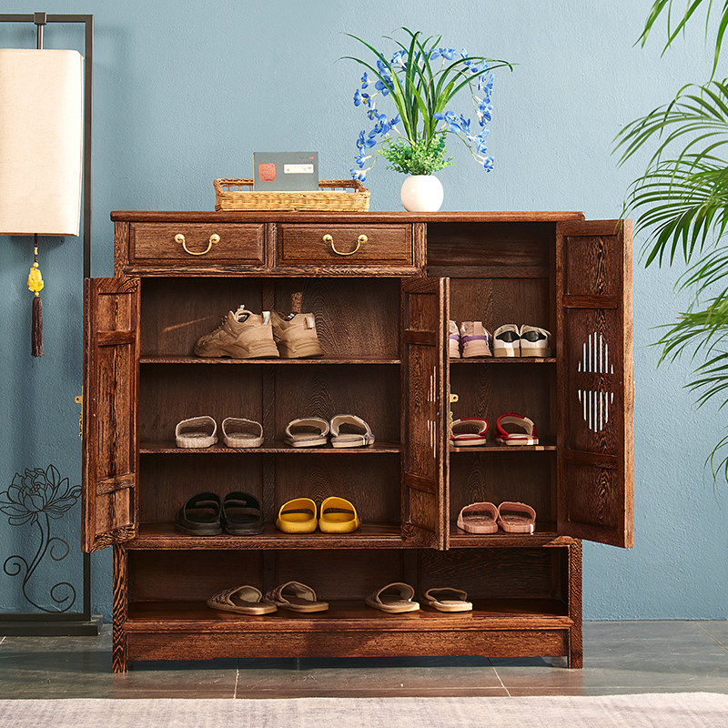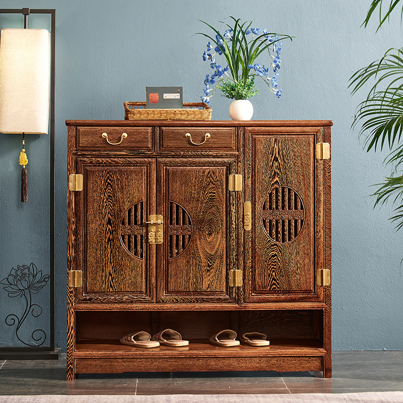 Mahogany simple shoe cabinet three doors two pumping chicken wing wood solid wood new Chinese style home locker complete furniture