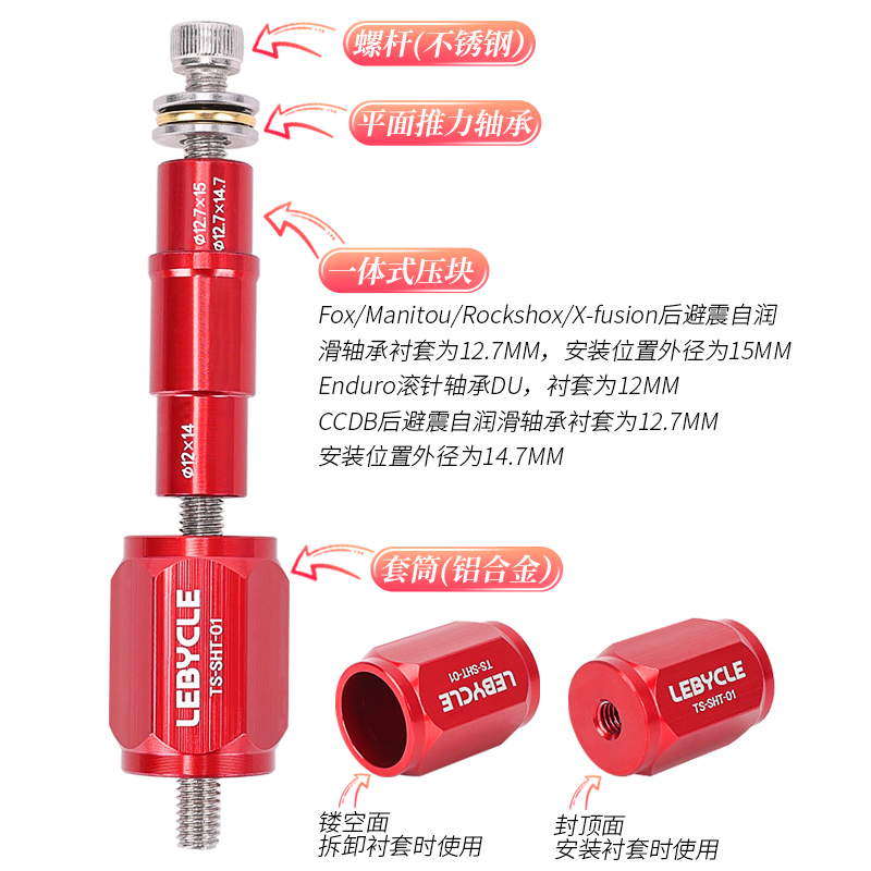 Mountain soft tail bicycle FOX shock-avoidance bushing presses into DNM after tail DU shaft dismantling and maintenance tool