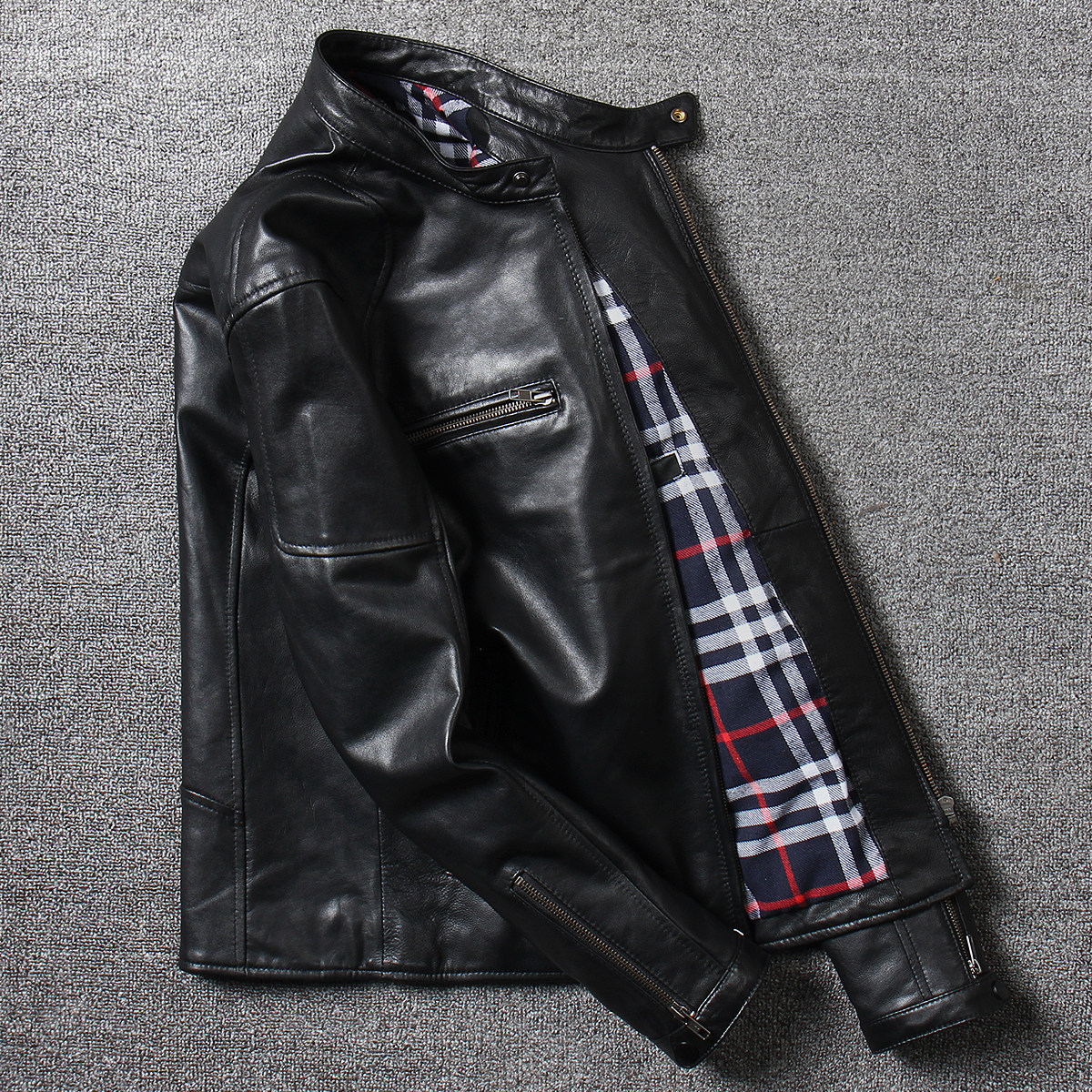 Haining Locomotive Fur Dresses Men's coat for short - term sheep leather jacket