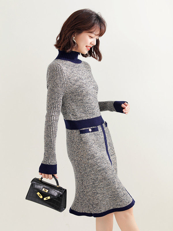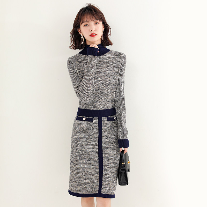 Langzi women's wear 2022 autumn and winter domestic new temperament waist-length wool knitted sweater with a dress