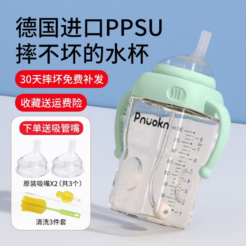 Pnokn straw bottle 1 year old 2 years 3 years 6 months ppsu milk bottle big baby anti-flatulled gas school drink duckbill-Taobao