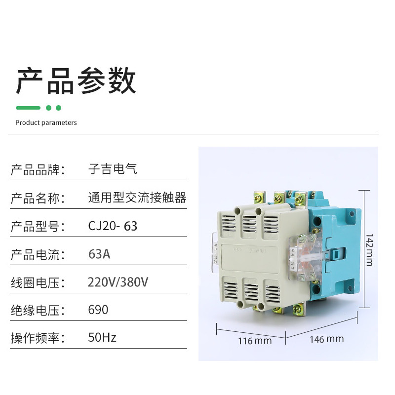 CJ20-63A AC contactor two open two closed auxiliary point coil voltage 220V three-phase 380V contactor