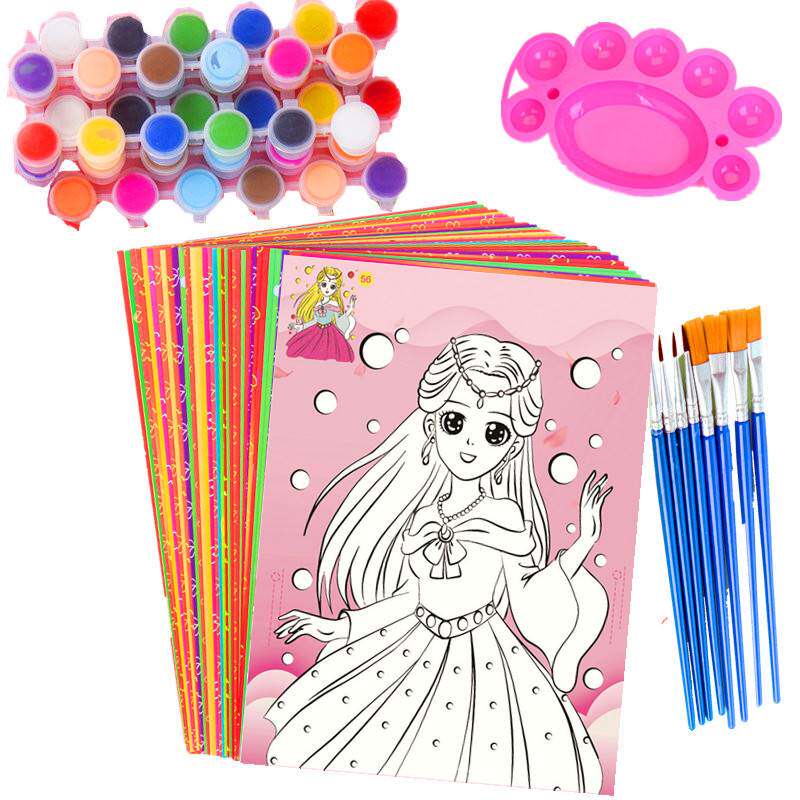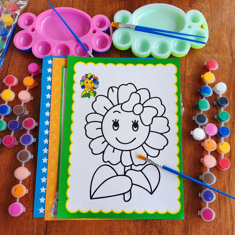 Children drawing suit painted diy paint watercolor painting Pink Graffiti Painting Water Powder Kindergarten Color Painting Handmade-Taobao