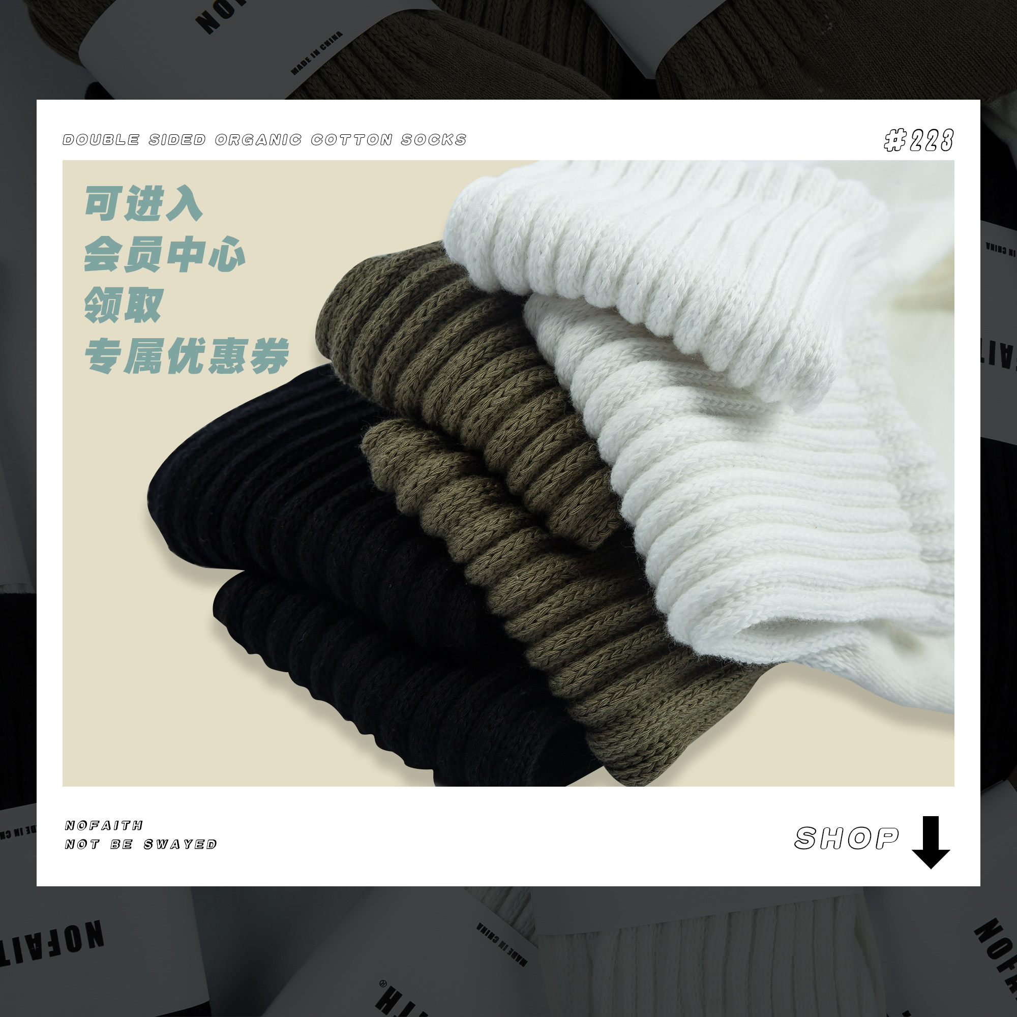 NOFAITH men's sweat-absorbing cotton socks simple and versatile solid color mid-tube trend sports cotton socks for men and women white army green