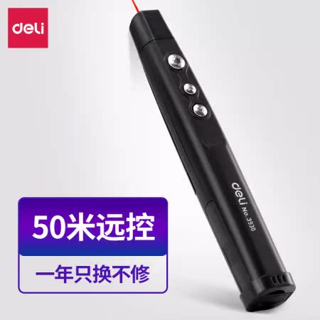 Deli 360-degree control laser page turning pen wireless presentation page turning red light black 3930