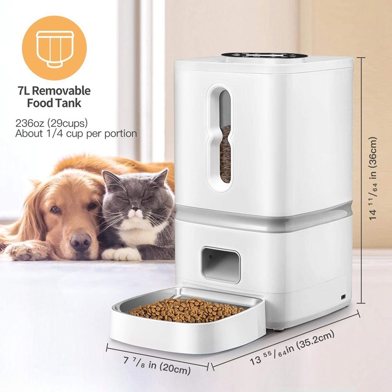 Cat bowl automatic feeder 7 liter window version pet food timing quantitative intelligent stainless steel plate food bowl easy to clean