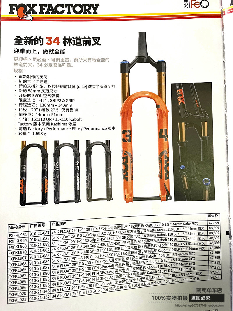 2023 FOX 29 inch 34 inner tube front fork 140mm stroke GRIP2 high and low speed adjustable damping