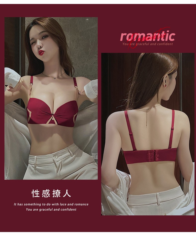 Korean temperament Benming year red no steel ring new V-shaped underwear suit women's high-end underwear suit women gather