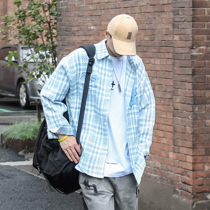 Autumn new style small fragrance style high-level plaid lapel shirt jacket men and women trendy brand loose couple shirt jacket