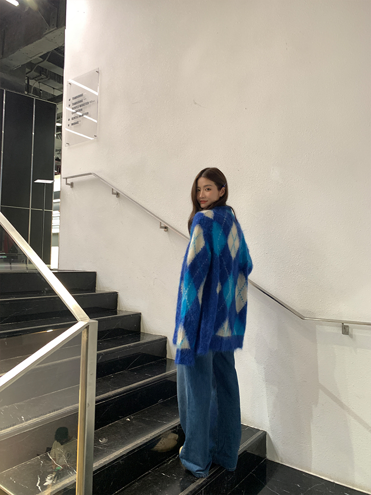 TOROON heavy industry intarsia brushed mohair knitted cardigan women's autumn 2022 new V-neck diamond sweater jacket