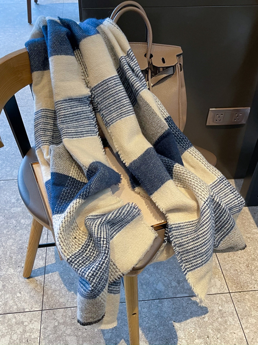 Japan Cosp Kosp Art Fan Xian White Blue Rice Large Plaid Scarf Women's Trend Thickened Warm Cashmere Scarf