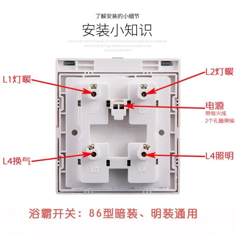 Bath overswitch quad 4 open 4 open 86 washroom Four combined with cover switch clamshell transparent frosted cover with fluorescence-Taobao