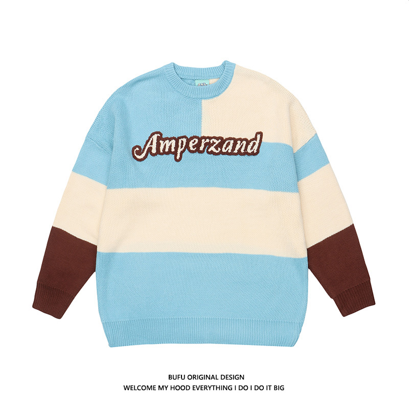 Millions of teenage American retro-coloured round-collar sweater men and women couples loose sweet coolness country tide knitting shirt