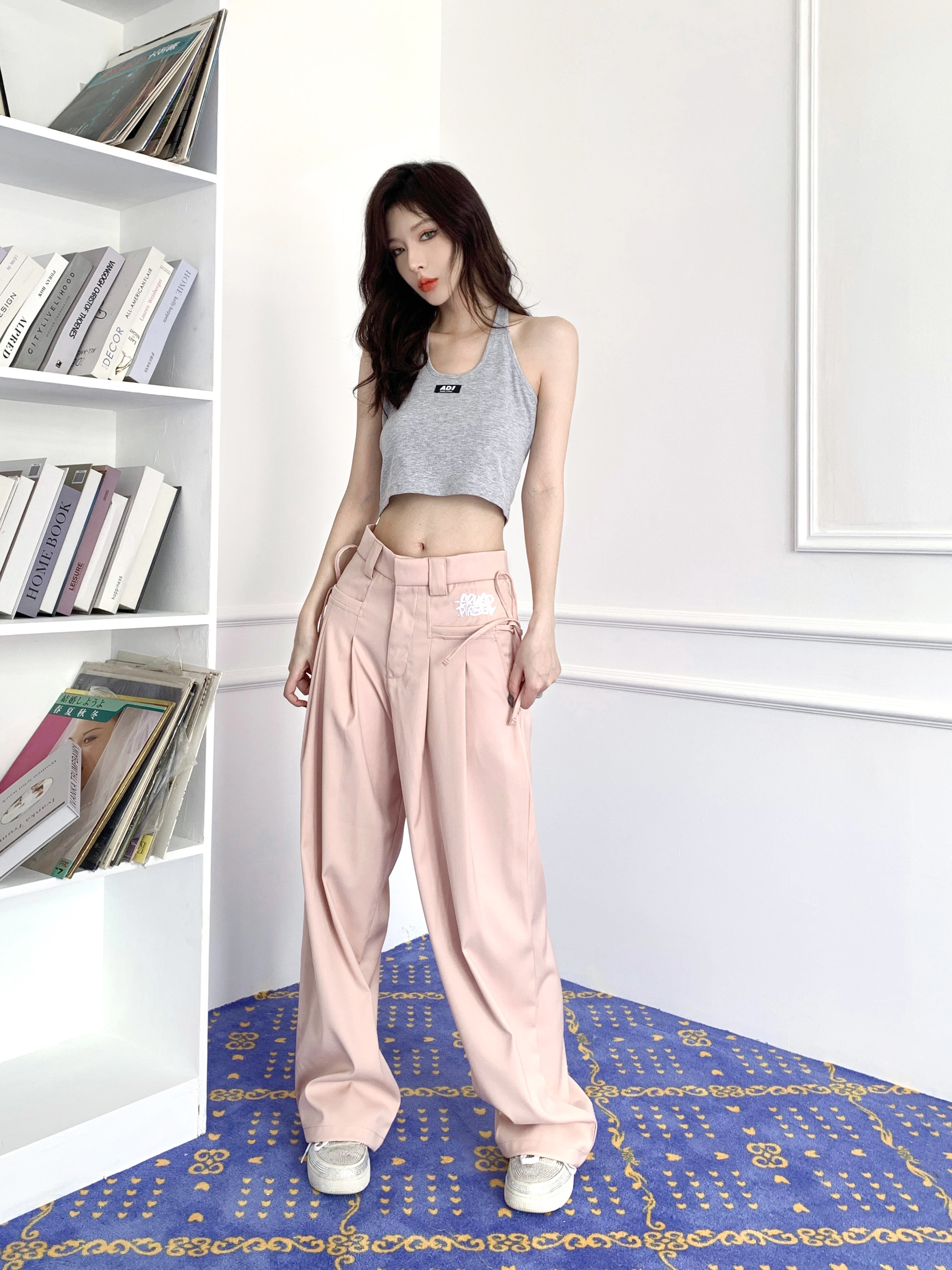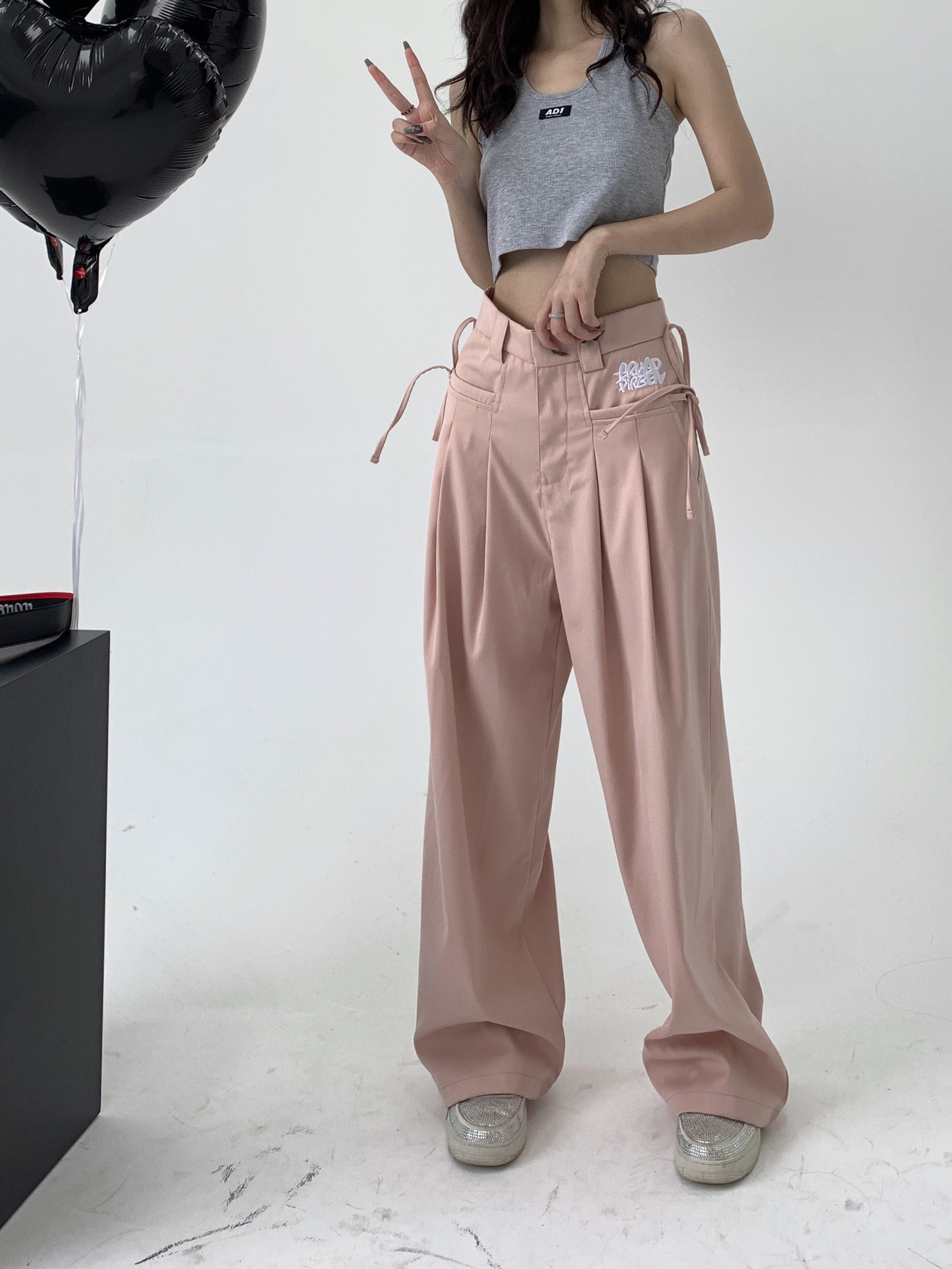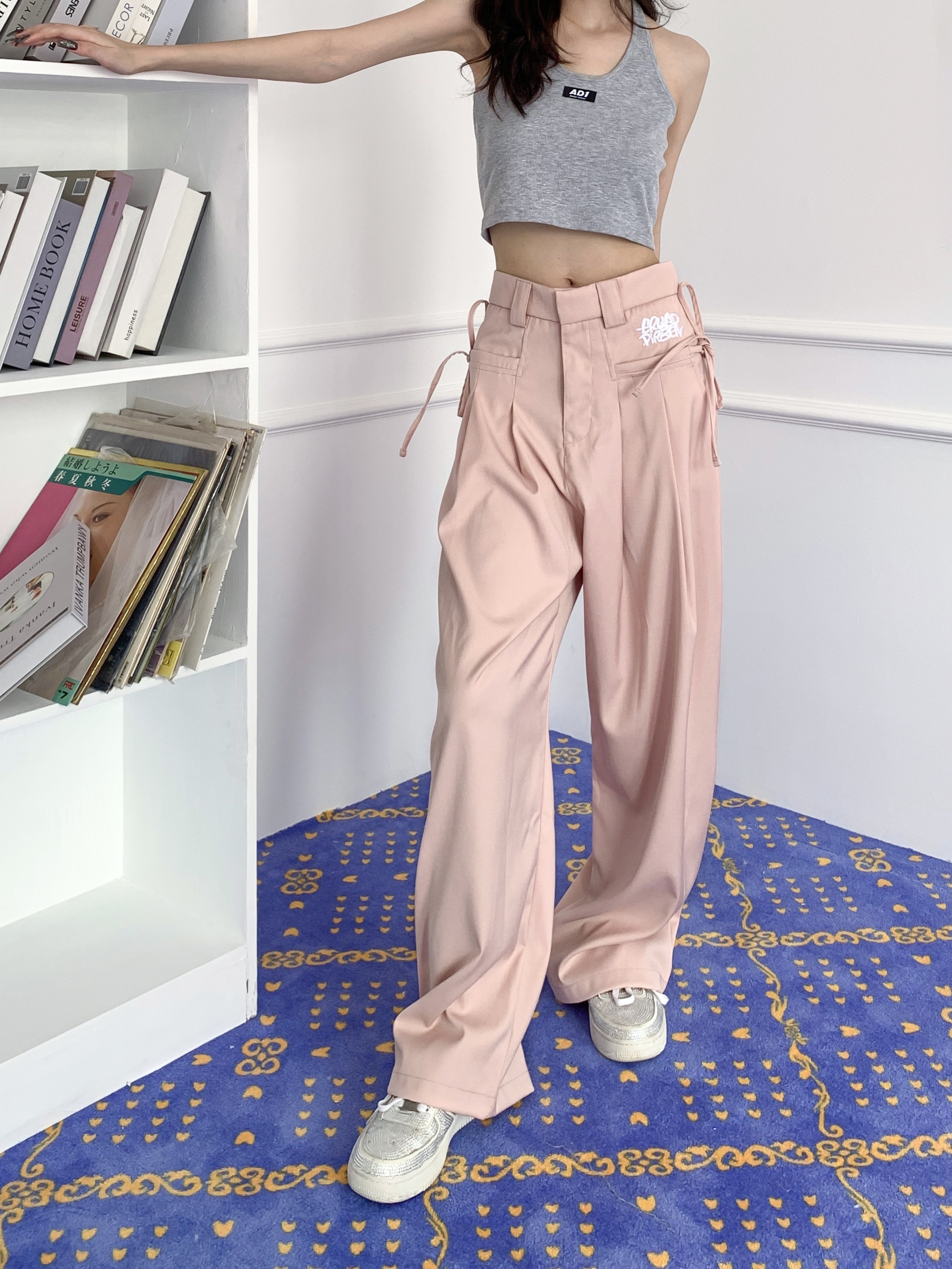 GRUGD DIRBEN pink loose casual suit pants niche straight trousers high waist drape wide leg pants