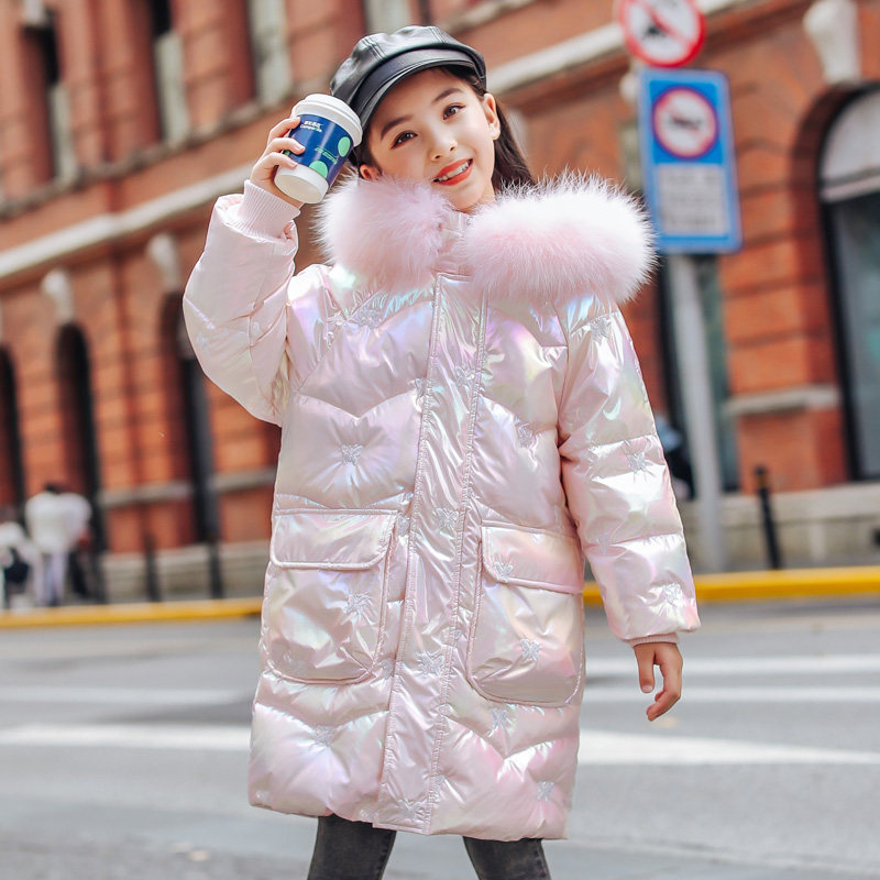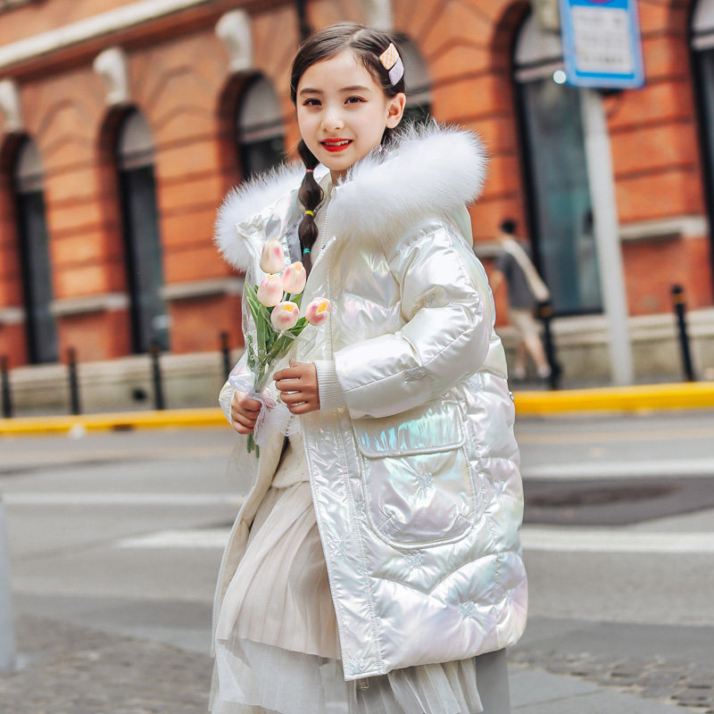 Bala girls down jacket thickened bright surface wash-free medium and long version of the western style big boy girl winter coat tide