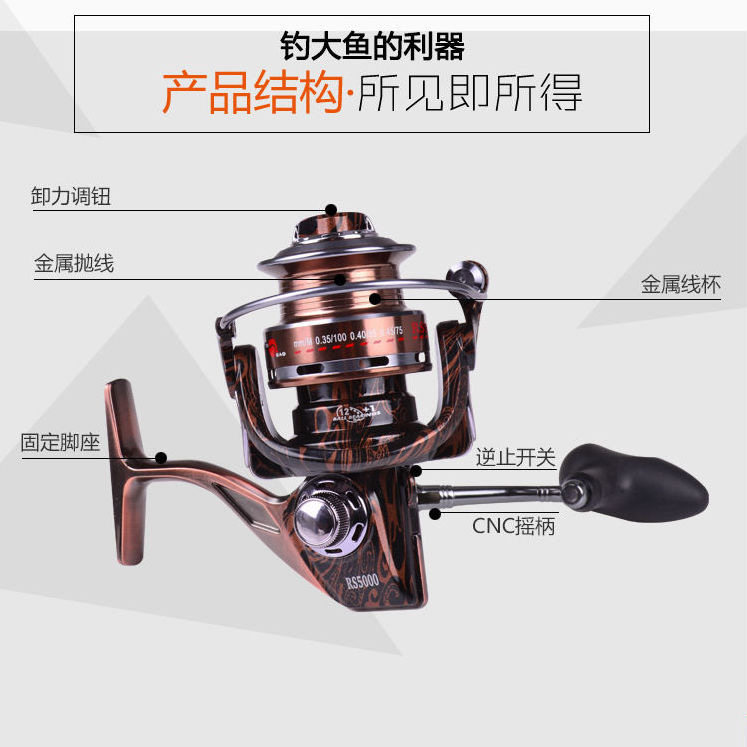 All-metal RS13 shaft fishing wheel oblique mouth shallow line cup Luya spinning wheel sea rod wheel rocky fishing wheel throwing rod long-range throwing wheel