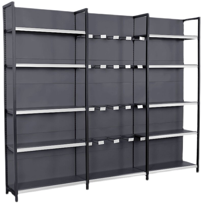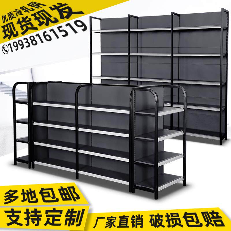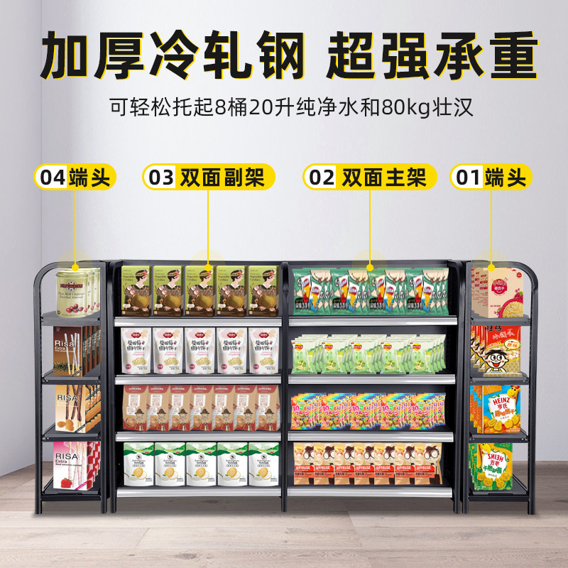 Four columns of gray supermarket shelves convenience storemotherbaby and children stationery pet storepet store multi-layer port snack display single double sides