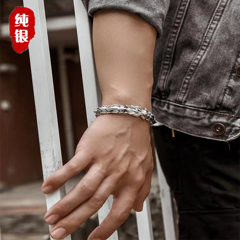 Pure silver keel bracelet men hip hop European and American fashion personality exaggerated punk retro design can not feel the hegemony