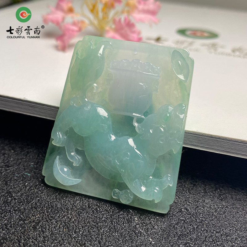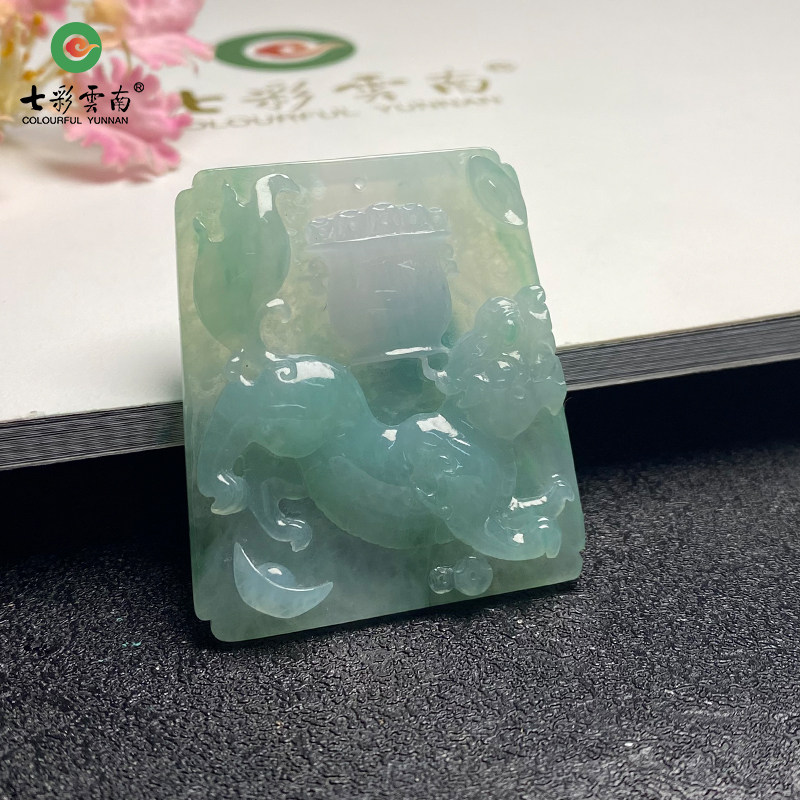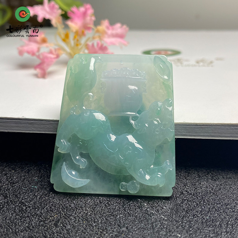 Color Yunnan Myanmar A cargo natural emerald with certificate ice light green Kirin hanging