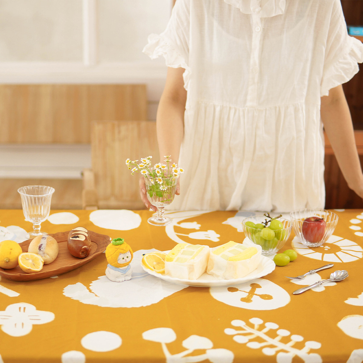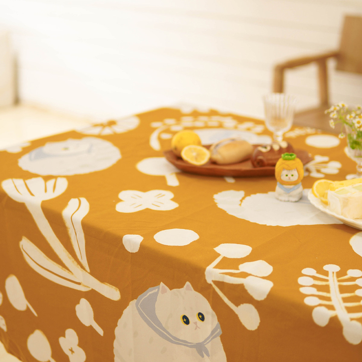 Apple fover cat (tablecloth) turmeric flower silver gradient (tablecloth)