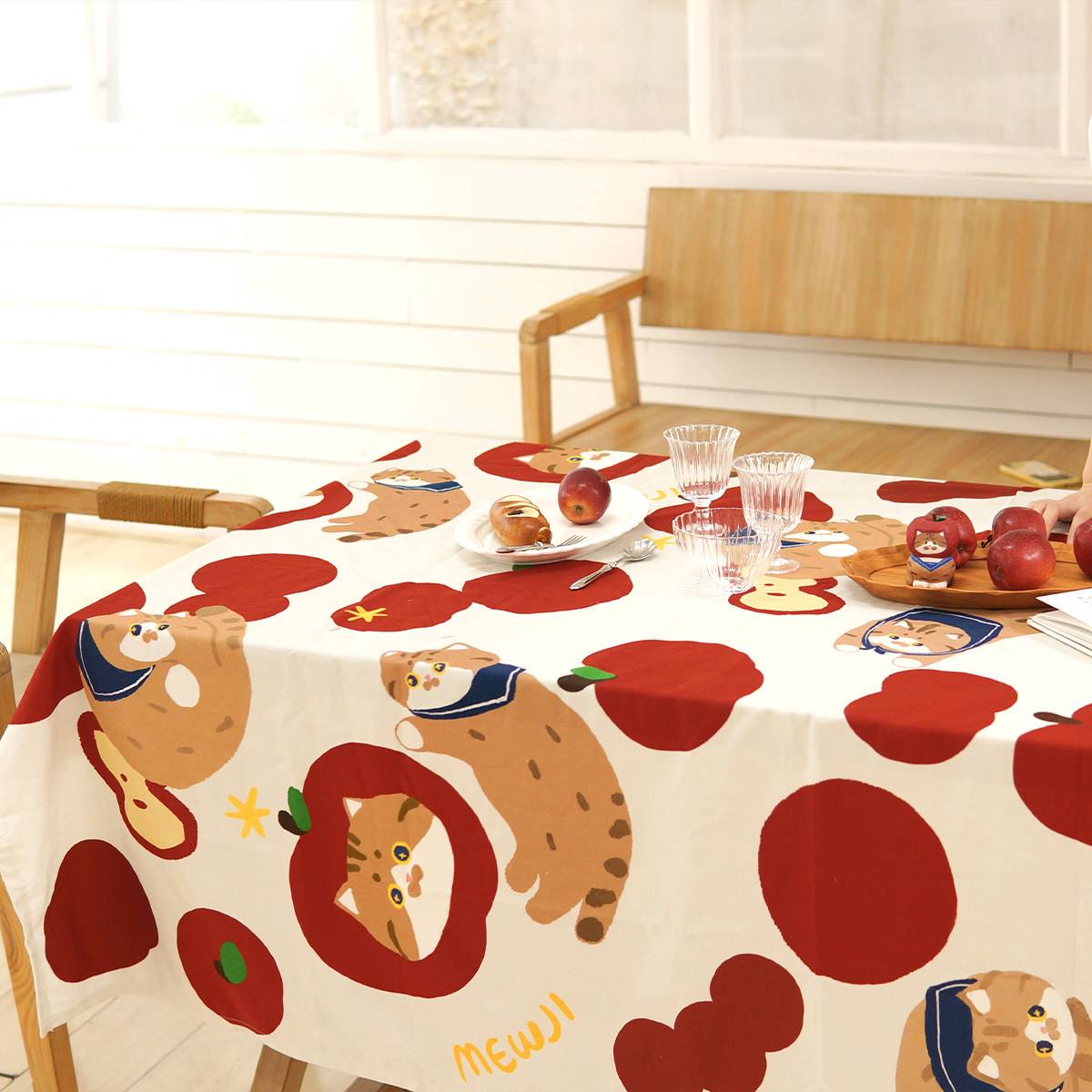 Mygi MEWJI Original Illustration Cute Flower Apple Japanese Fenglu tablecloth cloth outdoor picnic sand