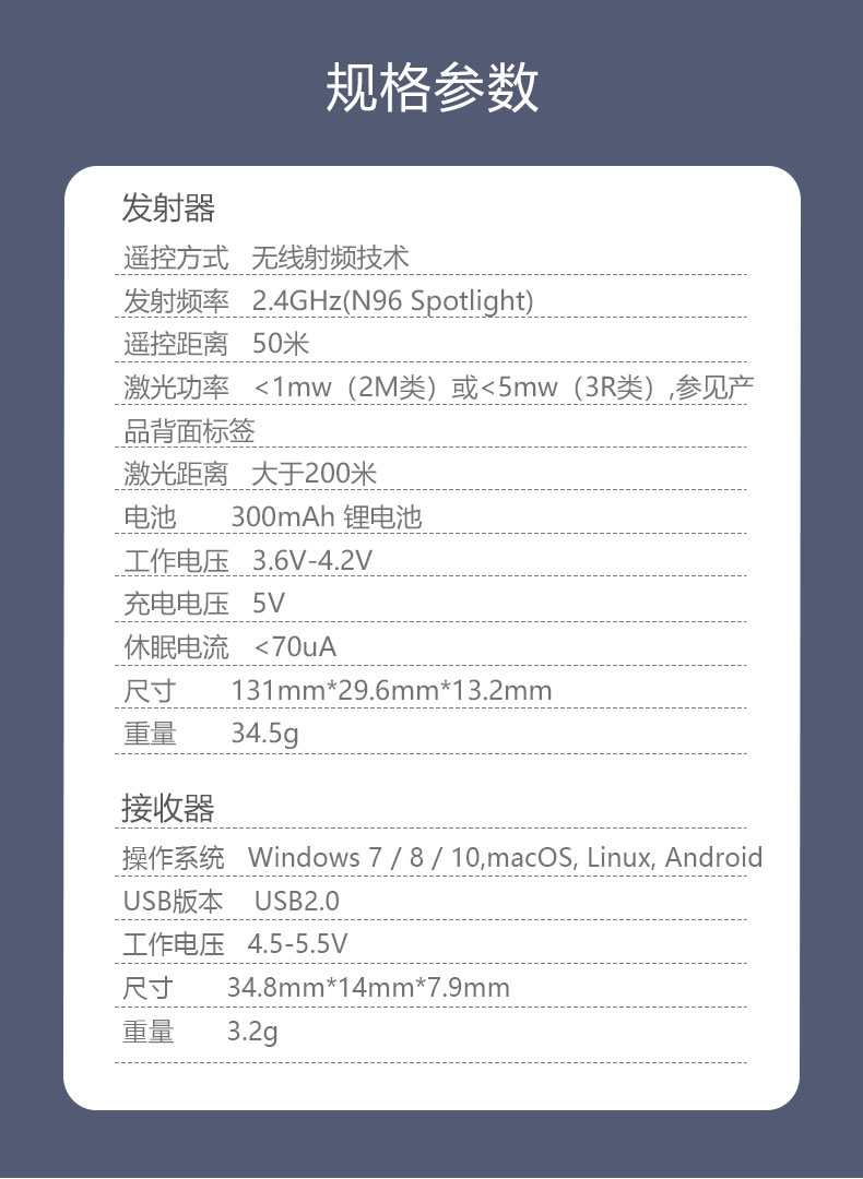 Nuowei N96 Spotlight laser page turning ppt remote control pen teacher charging with multimedia function projection pen