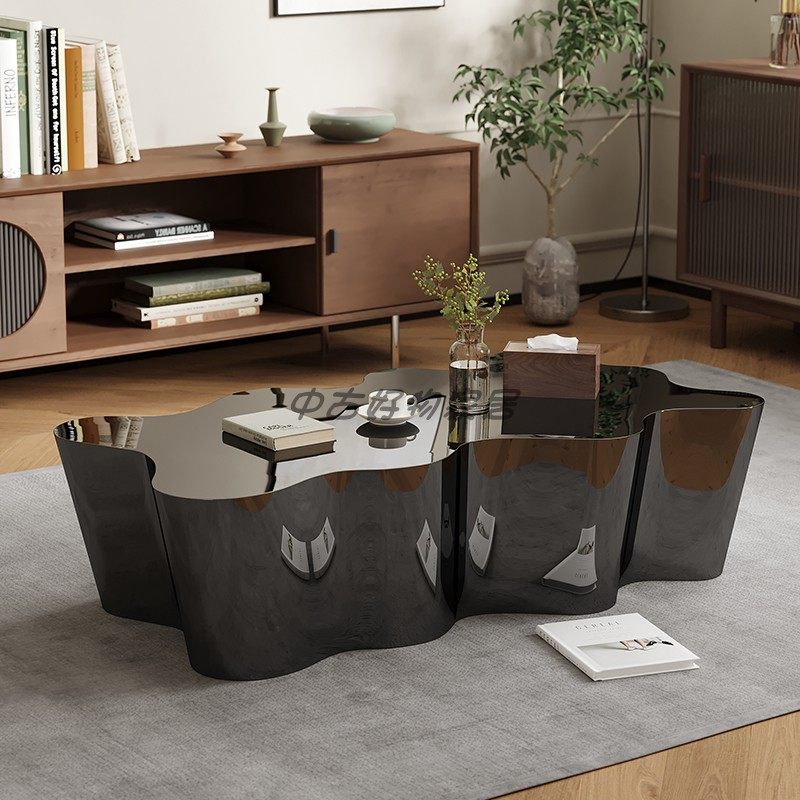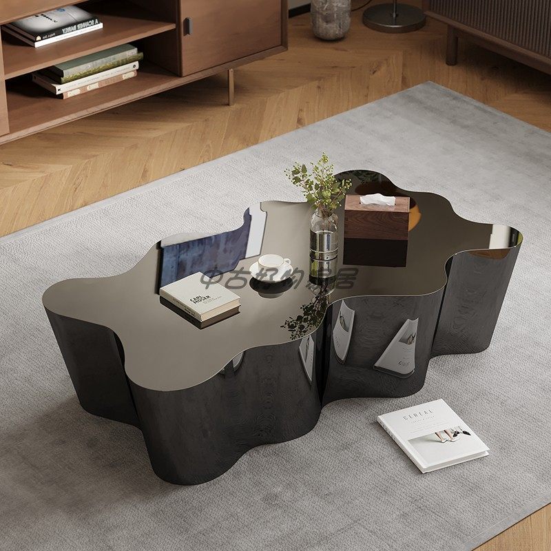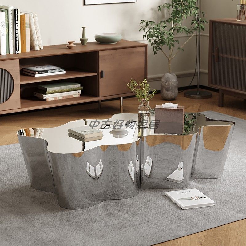 Designer Italian minimalist special-shaped coffee table stainless steel silver shiny high-end creative club coffee table tea table