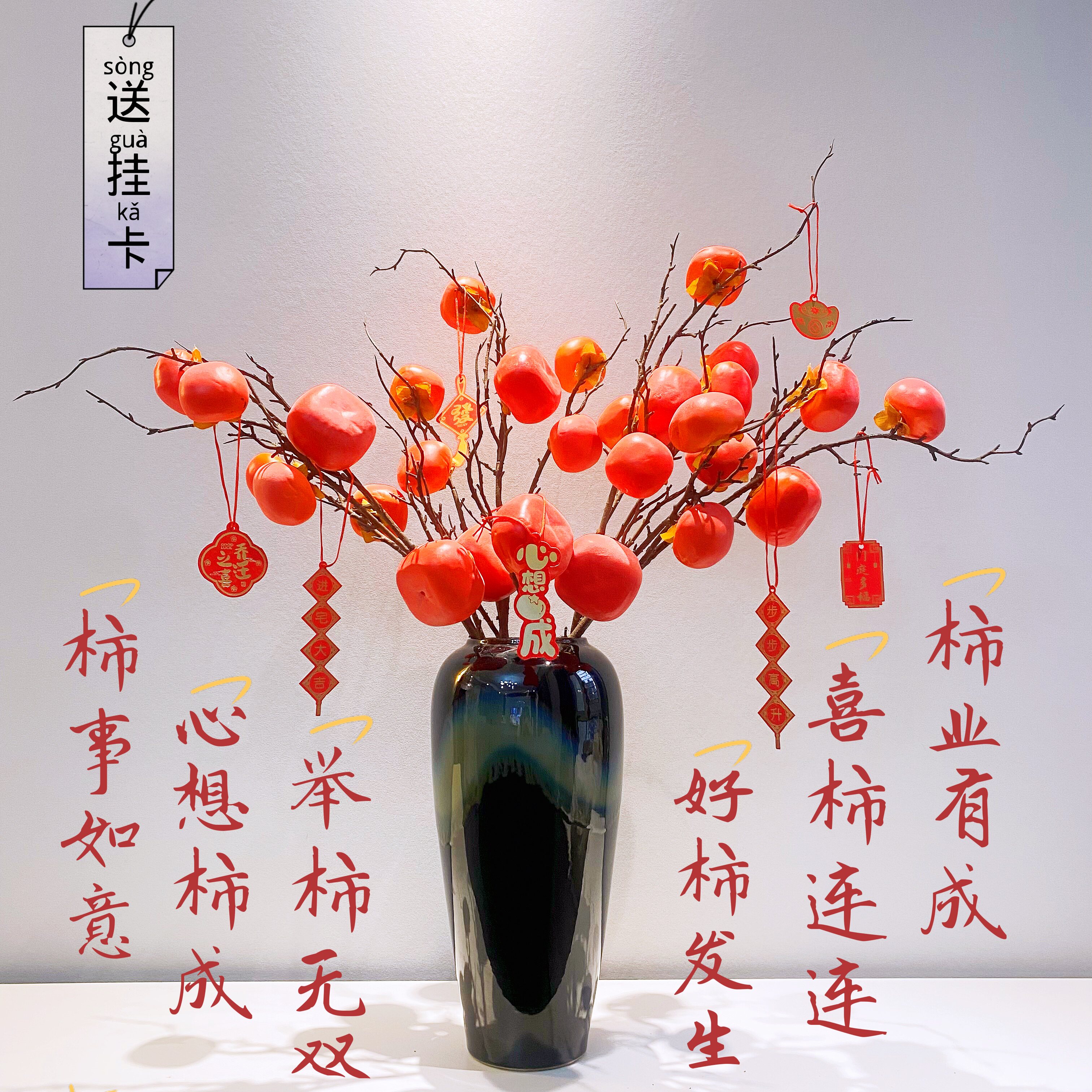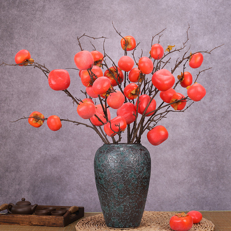 Simulation persimmon fruit fake flower branch decoration living room decorative flower persimmon persimmon wishful flower arrangement housewarming bouquet flower art