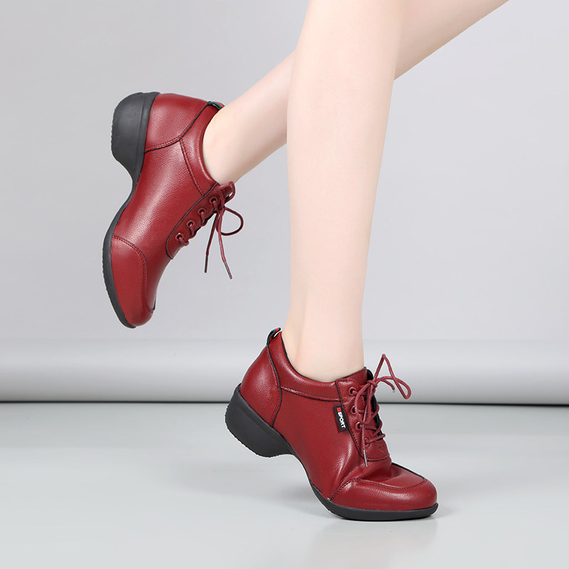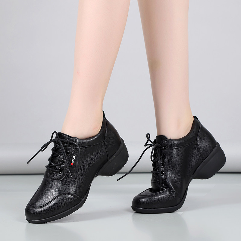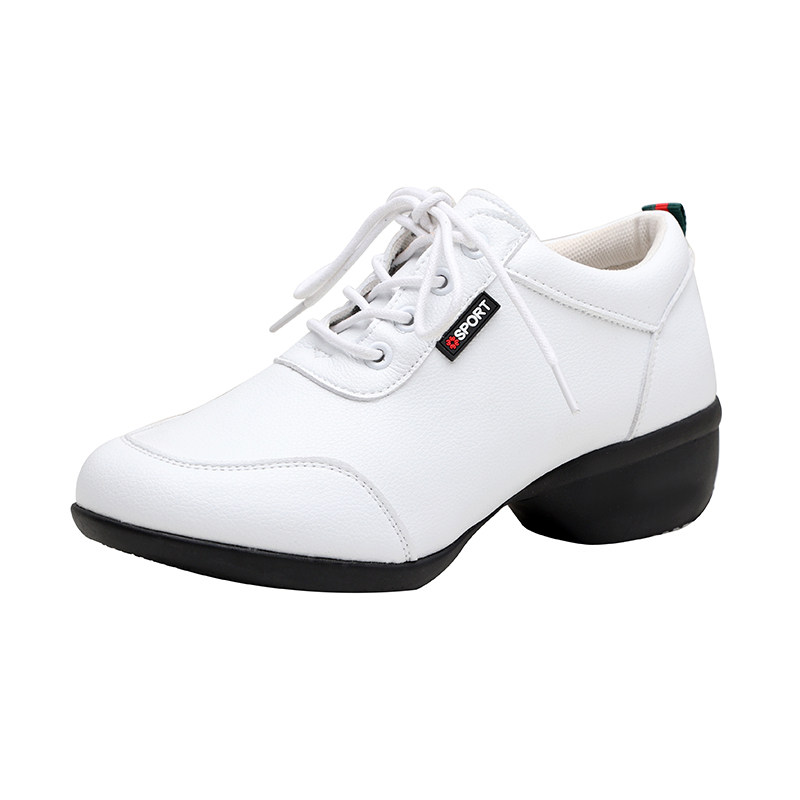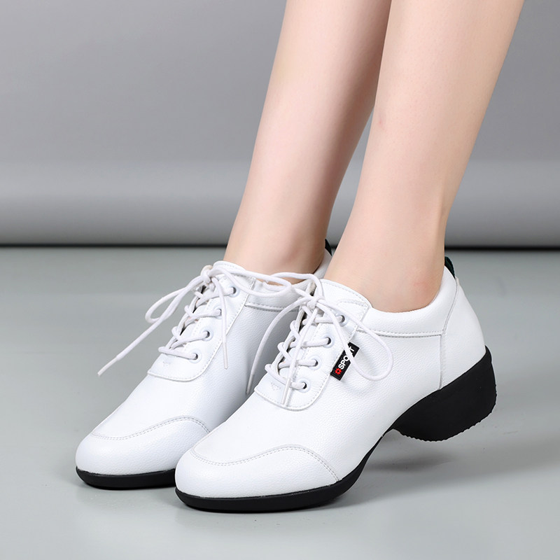 White leather dance shoes female soft soles tied square dance shoes in modern jazz dance shoes